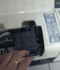 2. 取出墨盒后,你会发现墨盒上有一个小盖子,用手指轻轻按下,然后向上拉出,取出墨盒内部的墨水。